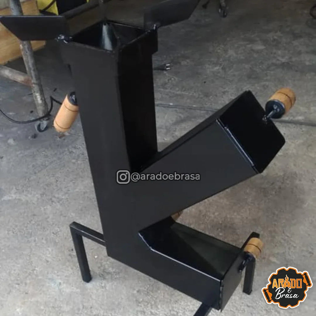 Suporte a Lenha: O suporte foi projetado para oferecer estabilidade e praticidade, permitindo que você cozinhe de forma rústica, preservando o sabor autêntico dos pratos feitos no fogo.